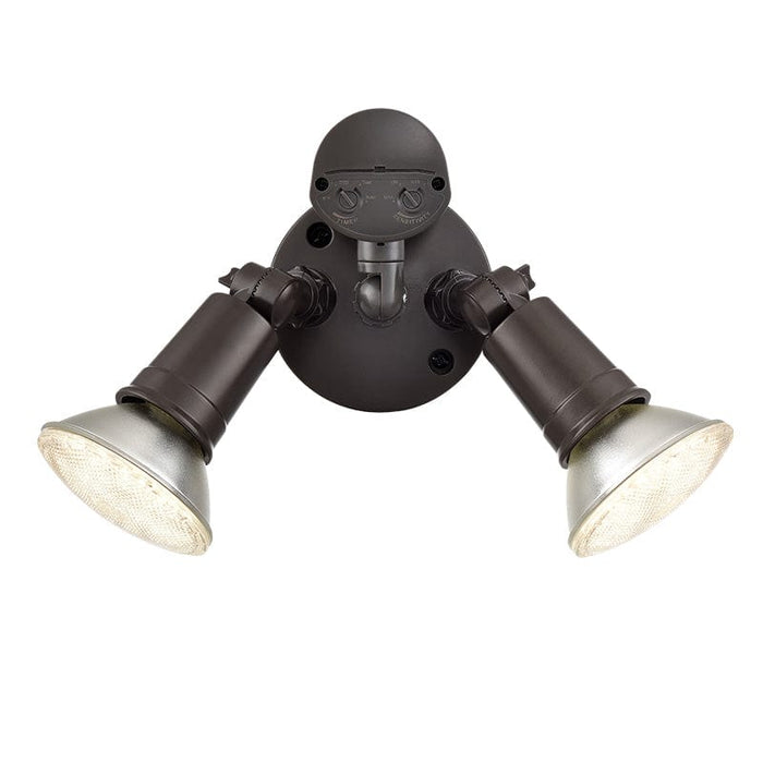 Motion Sensor Outdoor Dual-Head Flood Light - Powder Coated Bronze - 6in Extension - E26 Medium Base