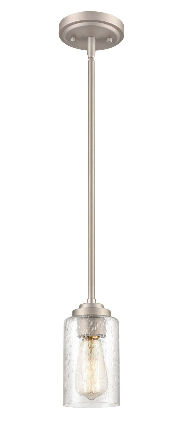 Moven Mini-Pendant - Satin Nickel - Clear Seeded Glass - 5in. Diameter - E26 Medium Base