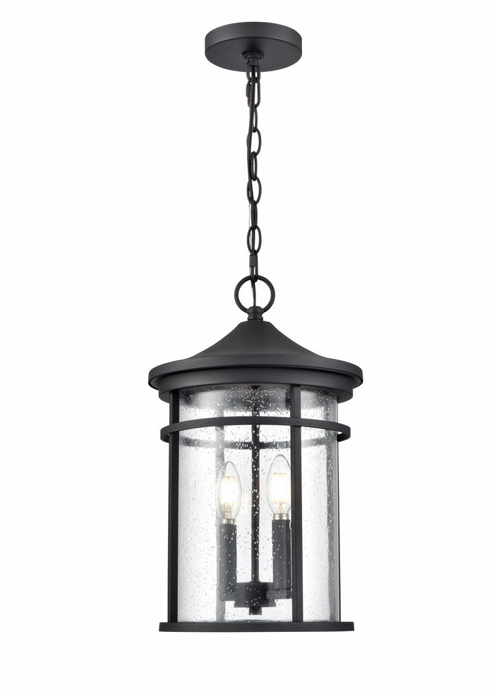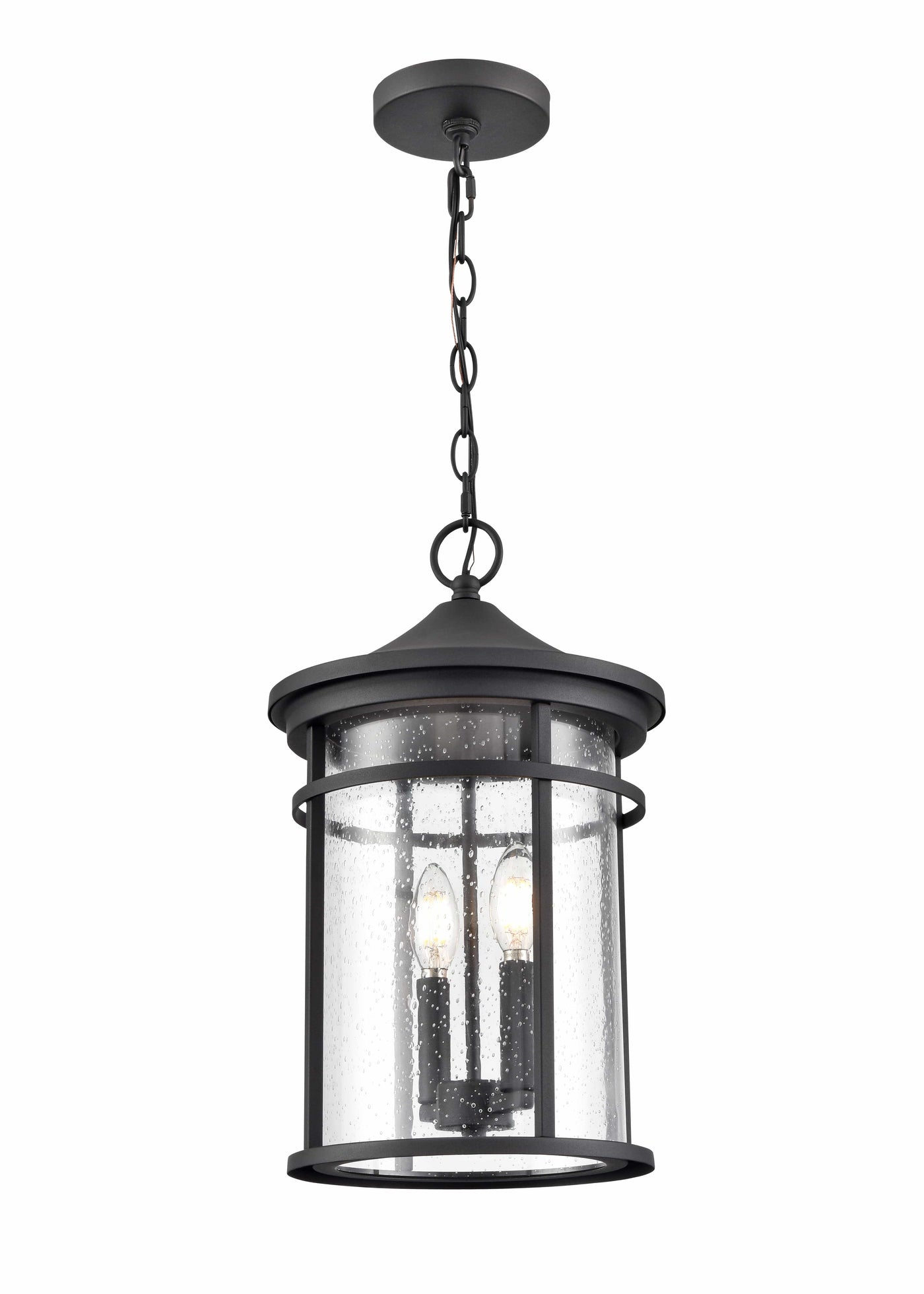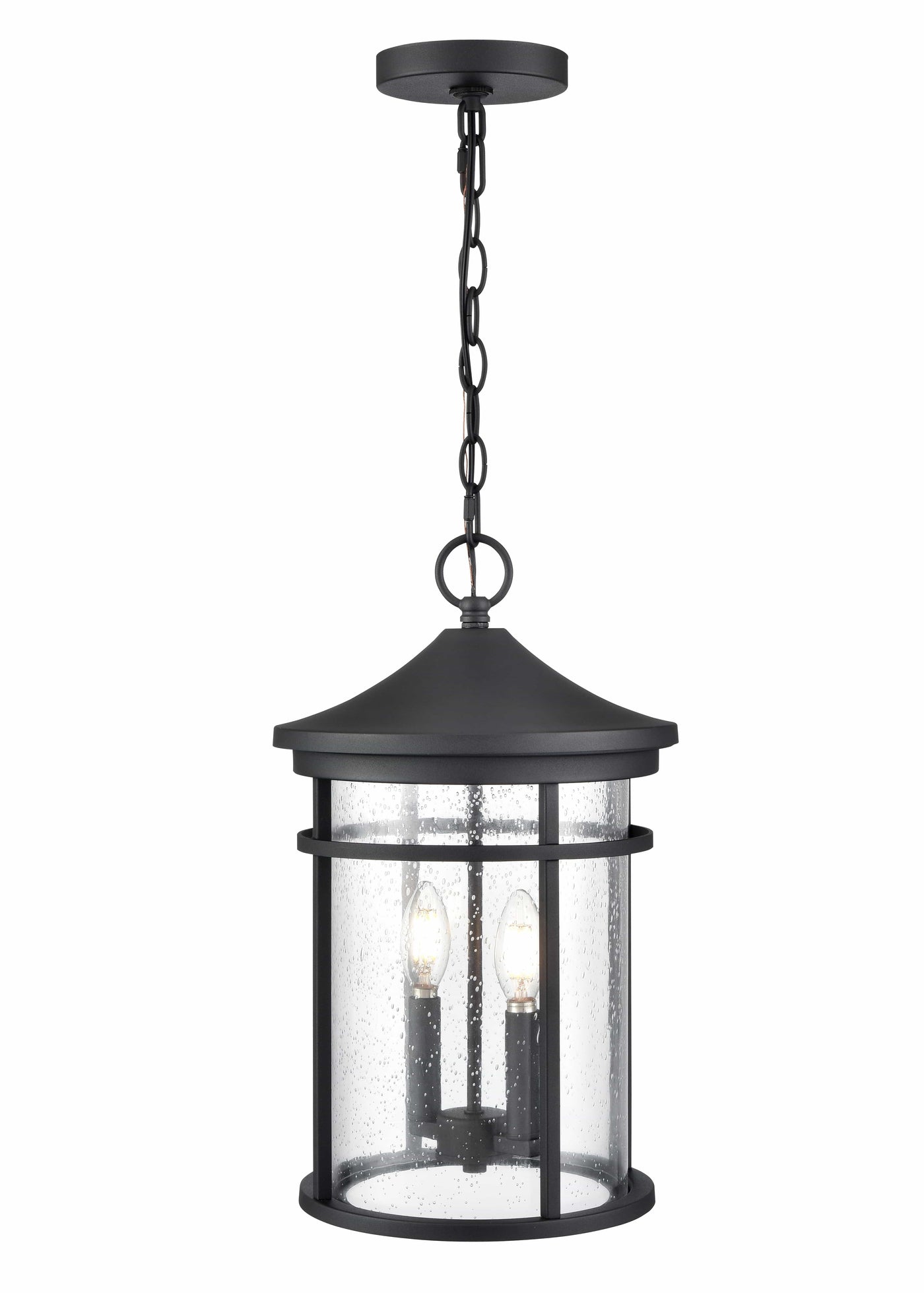 Namath Outdoor Hanging Lantern - Textured Black - Clear Seeded Glass - 10.5in. Diameter - E12 Candelabra Base
