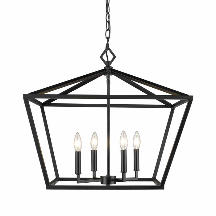 This Pendant Fixture features a Matte Black Finish and requires 4x 60W E12 Candelabra Base Bulb.