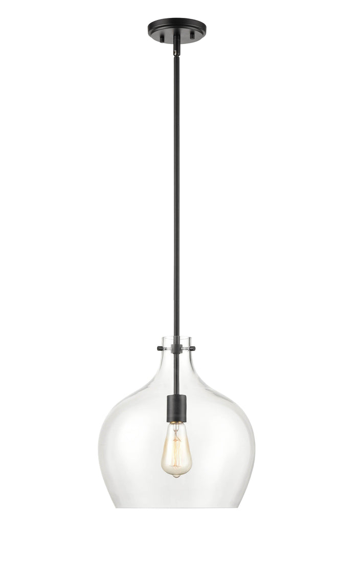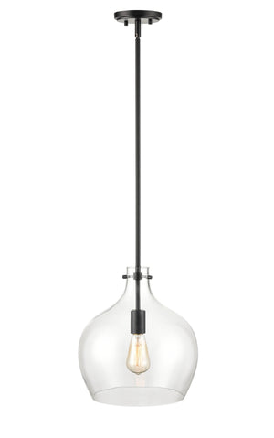 This Pendant Fixture features a Matte Black Finish and Clear Glass, and requires 1x 60W E26 Medium Base Bulb.