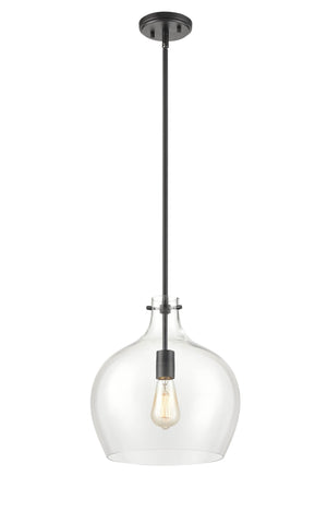 Pendant Fixture - Matte Black - Clear Glass - 12.875in. Diameter - E26 Medium Base