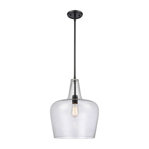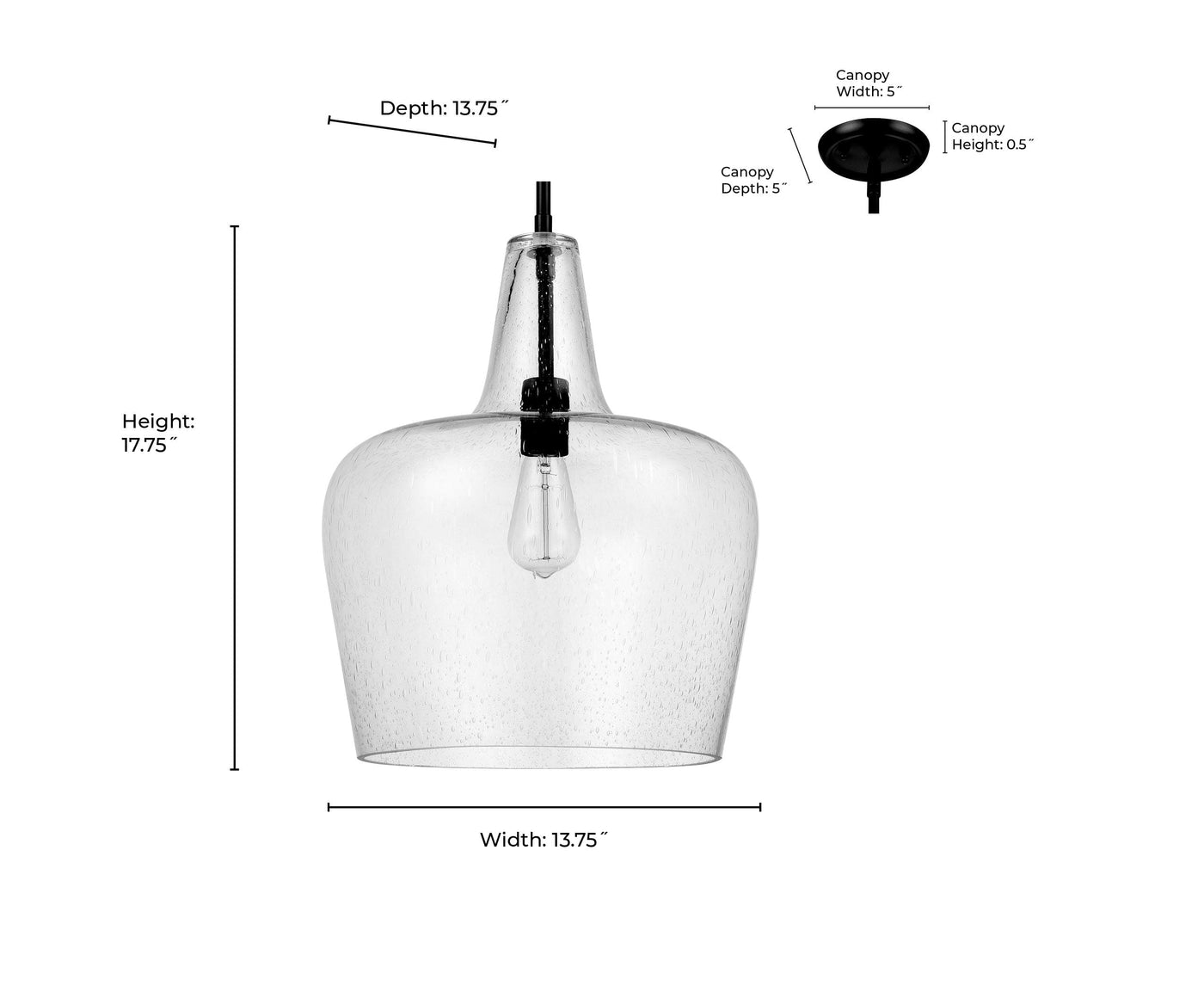 Puckette Pendant - Matte Black - Clear Seeded Glass - 13.75in. Diameter - E26 Medium Base