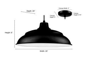 R Series Aluminum Warehouse Pendant - Satin Black - 20in. Diameter - E26 Medium Base
