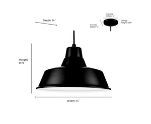 R Series Classic Warehouse Pendant - Satin Black - 14in. Diameter - E26 Medium Base