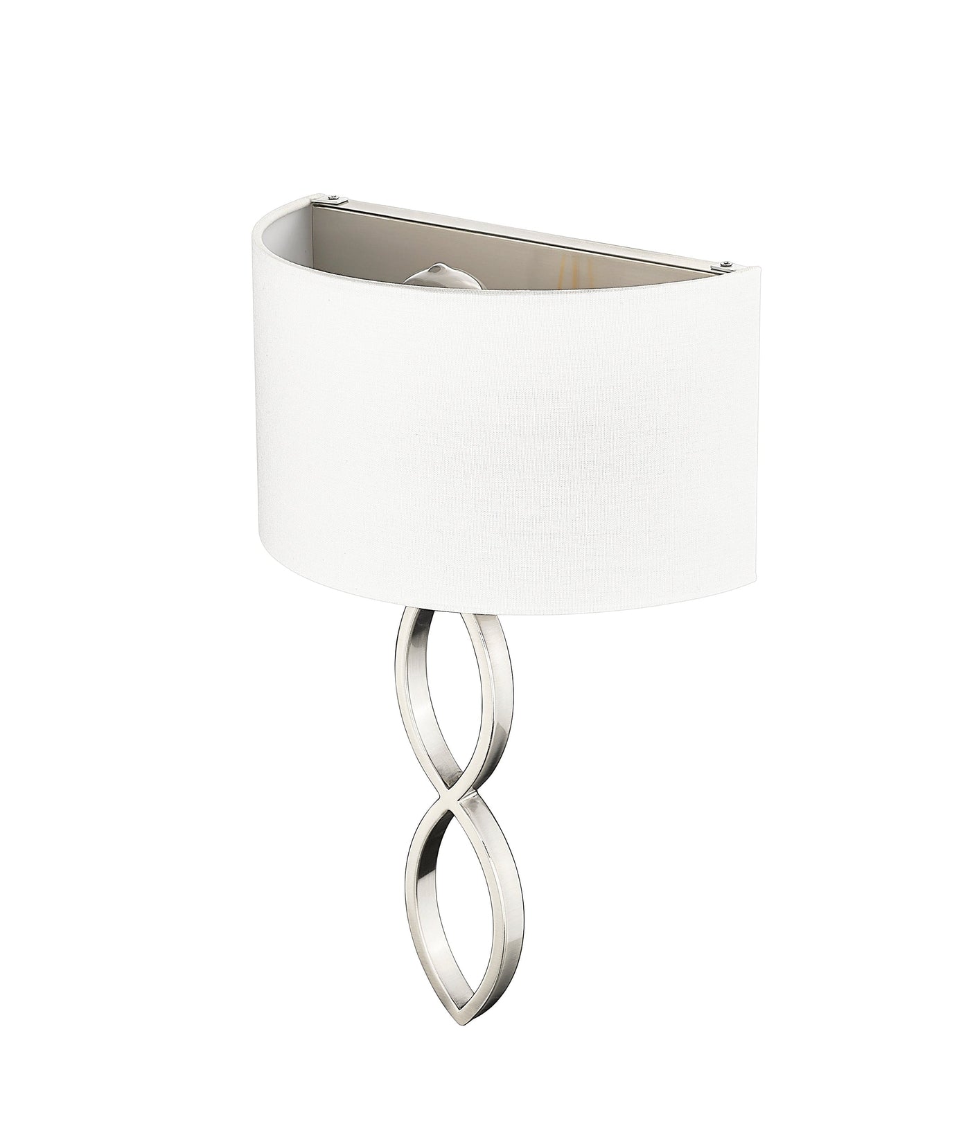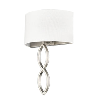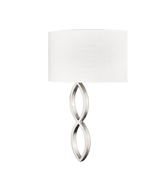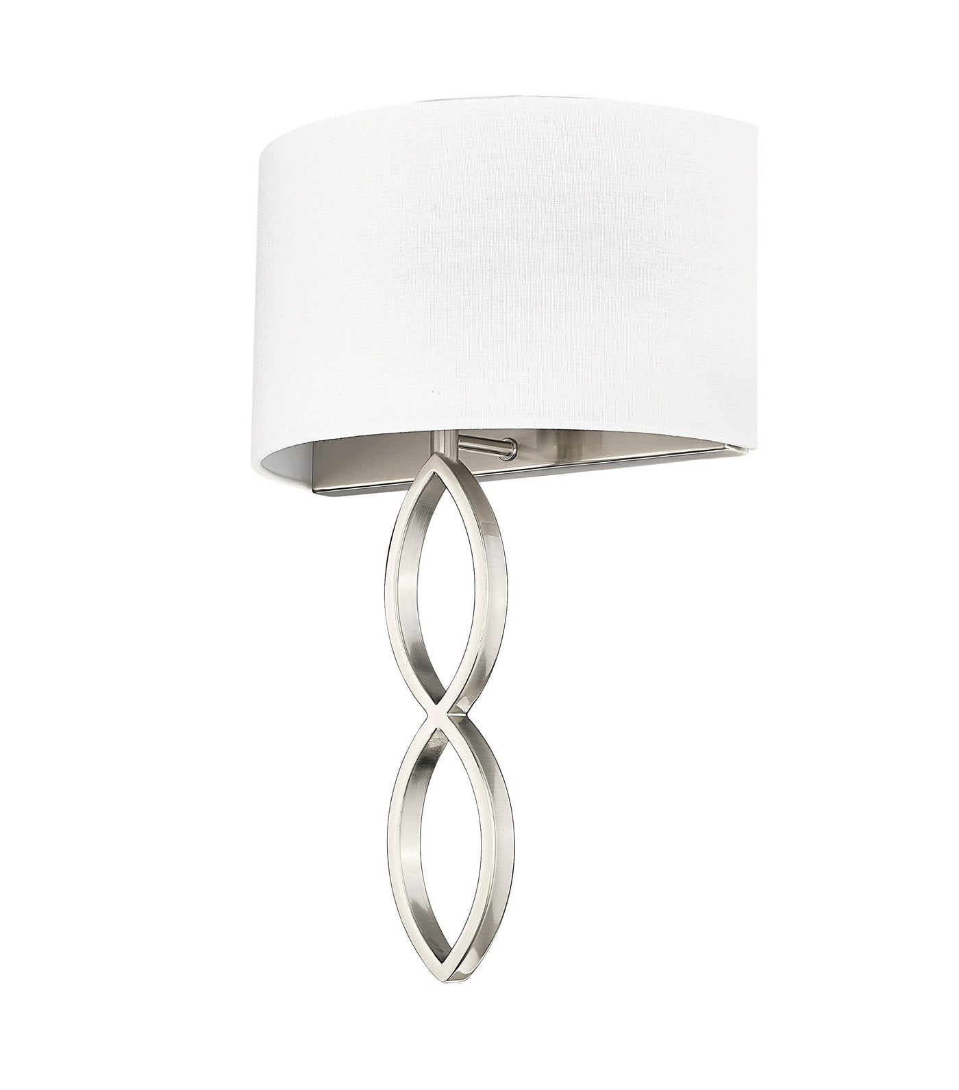 Rylee Wall Sconce - Brushed Nickel - White Linen Shade - 6.37in. Extension - E26 Medium Base