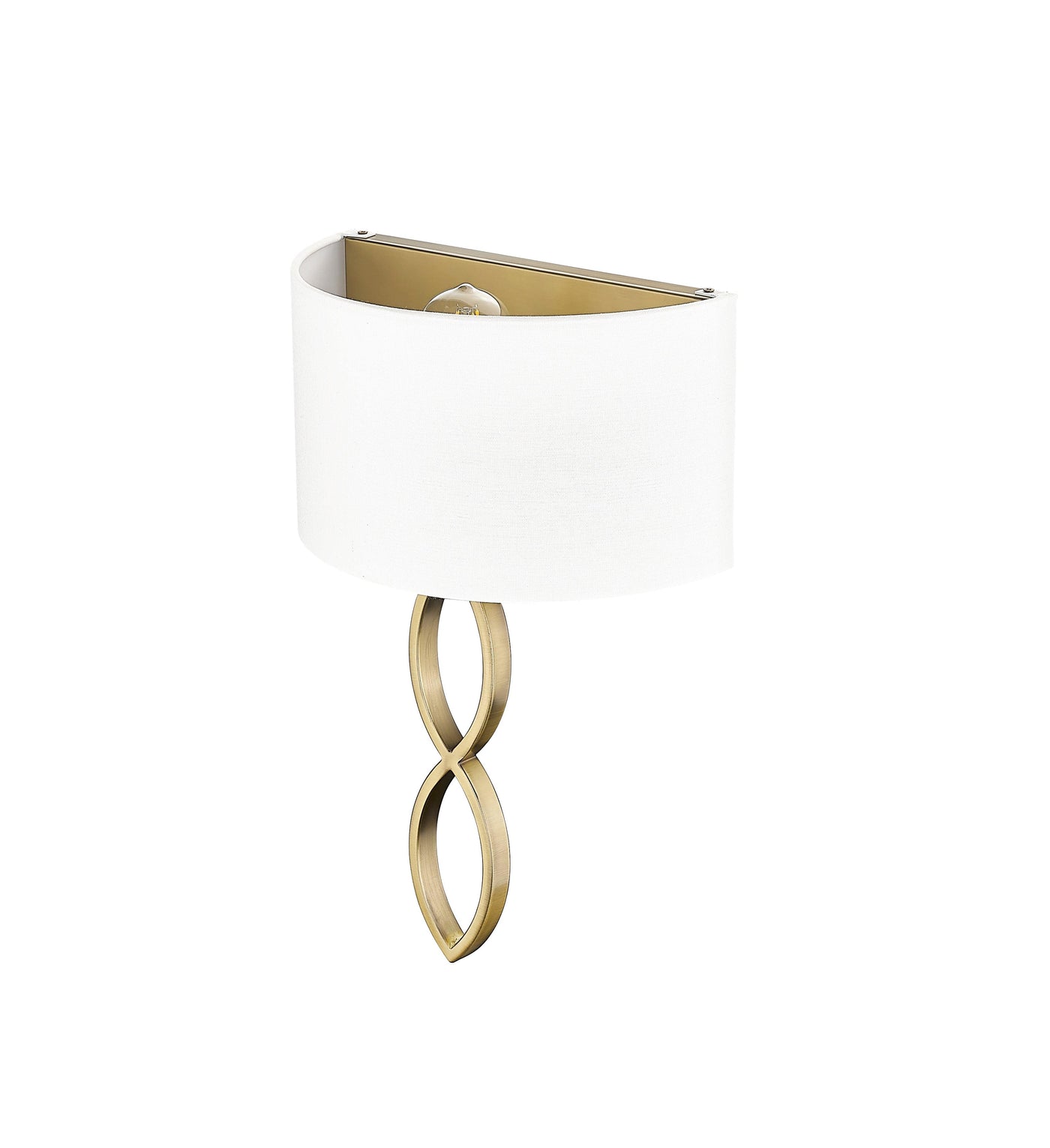 Rylee Wall Sconce - Vintage Brass - White Linen Shade - 6.37in. Extension - E26 Medium Base