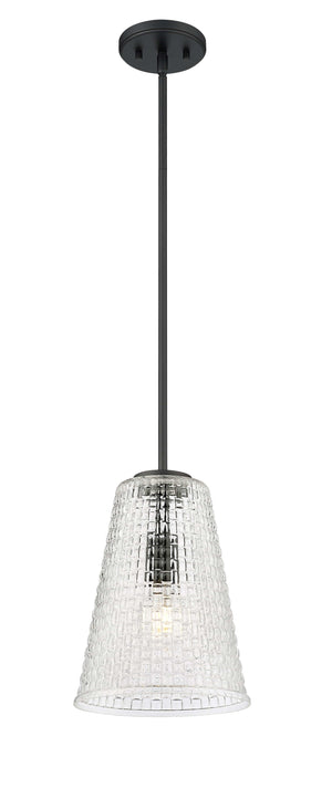 Saben Pendant - Matte Black - Clear Woven Lattice Glass - 9.1in. Diameter - E26 Medium Base