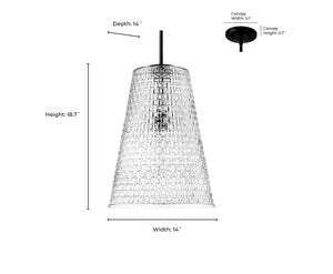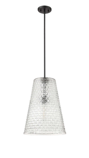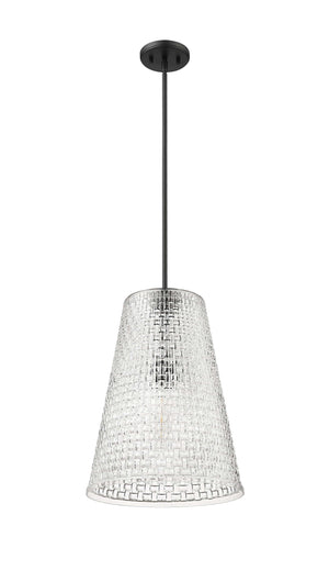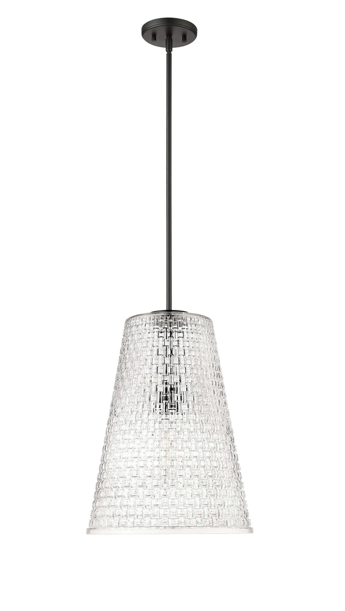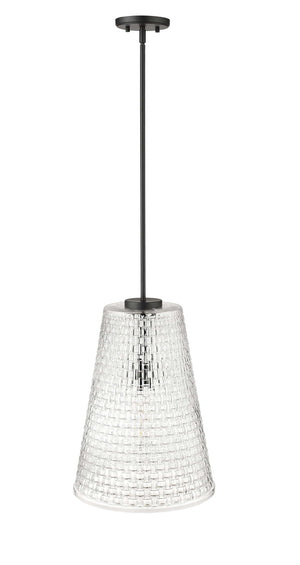 Saben Pendant - Matte Black - Rattan Lattice Clear Glass - 14in. Diameter - E26 Medium Base