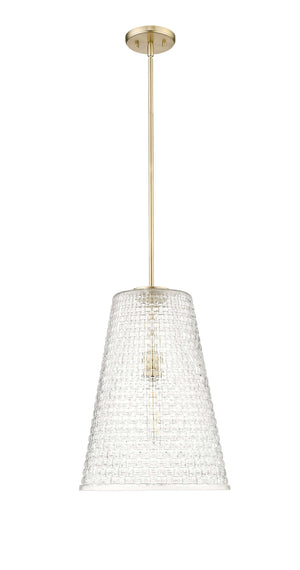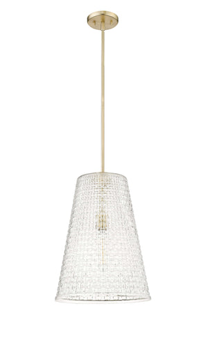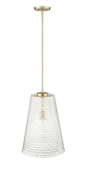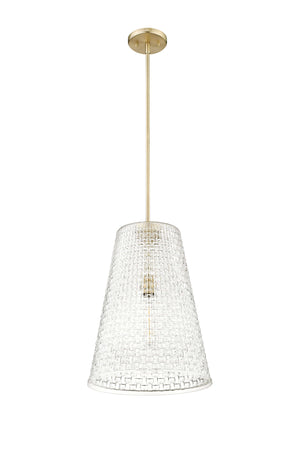 Saben Pendant - Modern Gold - Rattan Lattice Clear Glass - 14in. Diameter - E26 Medium Base