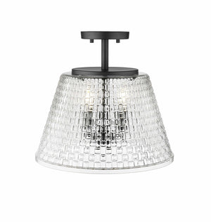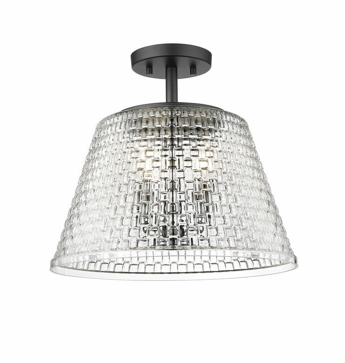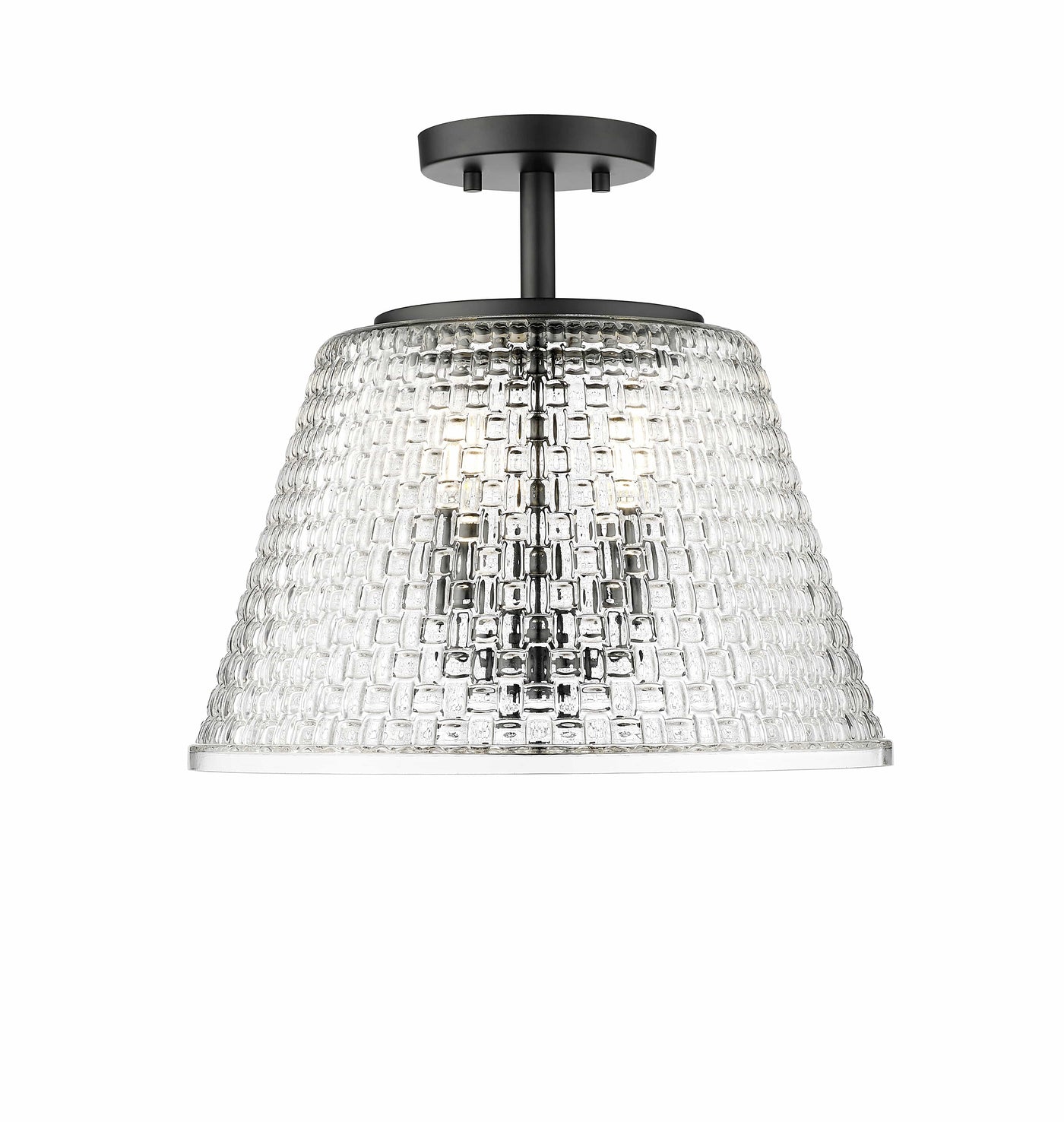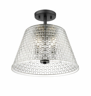 Saben Semi-Flush Mount Fixture - Matte Black - Clear Woven Lattice Glass - 15in. Diameter - E12 Candelabra Base