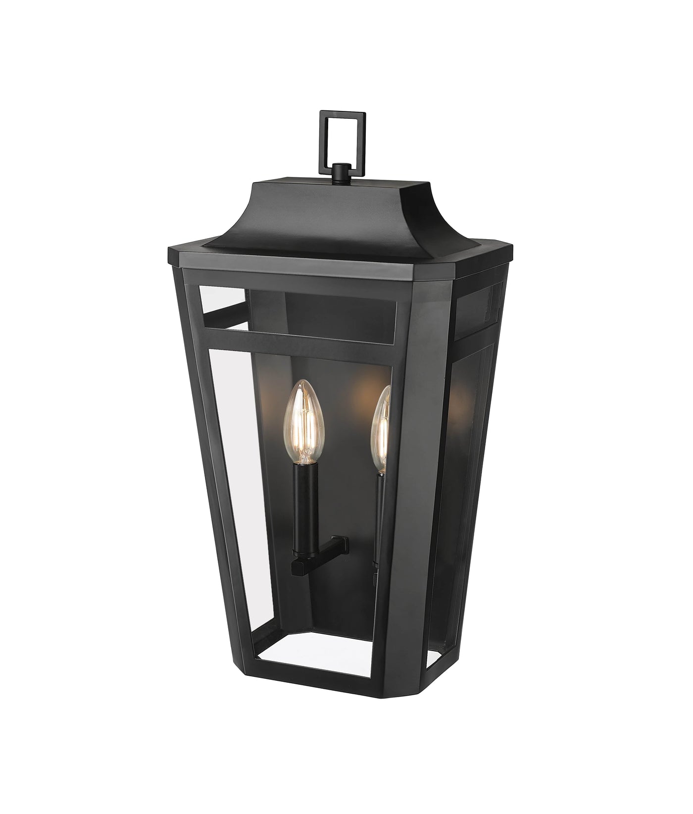 Sumerlin Outdoor Wall Sconce - Powder Coated Black - Clear Glass - 8in. Extension - E12 Candelabra Base