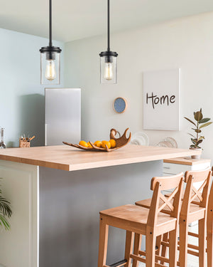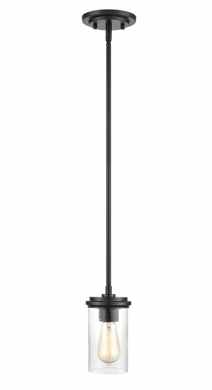 Taos Mini-Pendant - Matte Black / Wood Grain - Clear Seeded Glass - 7in. Diameter - E26 Medium Base