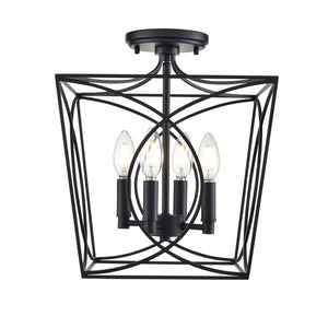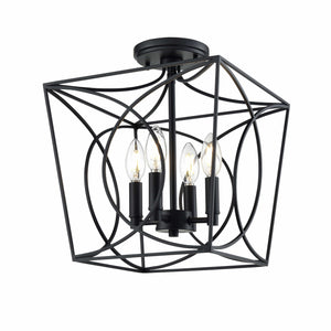 Tracy Semi-Flush Mount Fixture - Matte Black - 12in. Diameter - E12 Candelabra Base