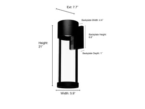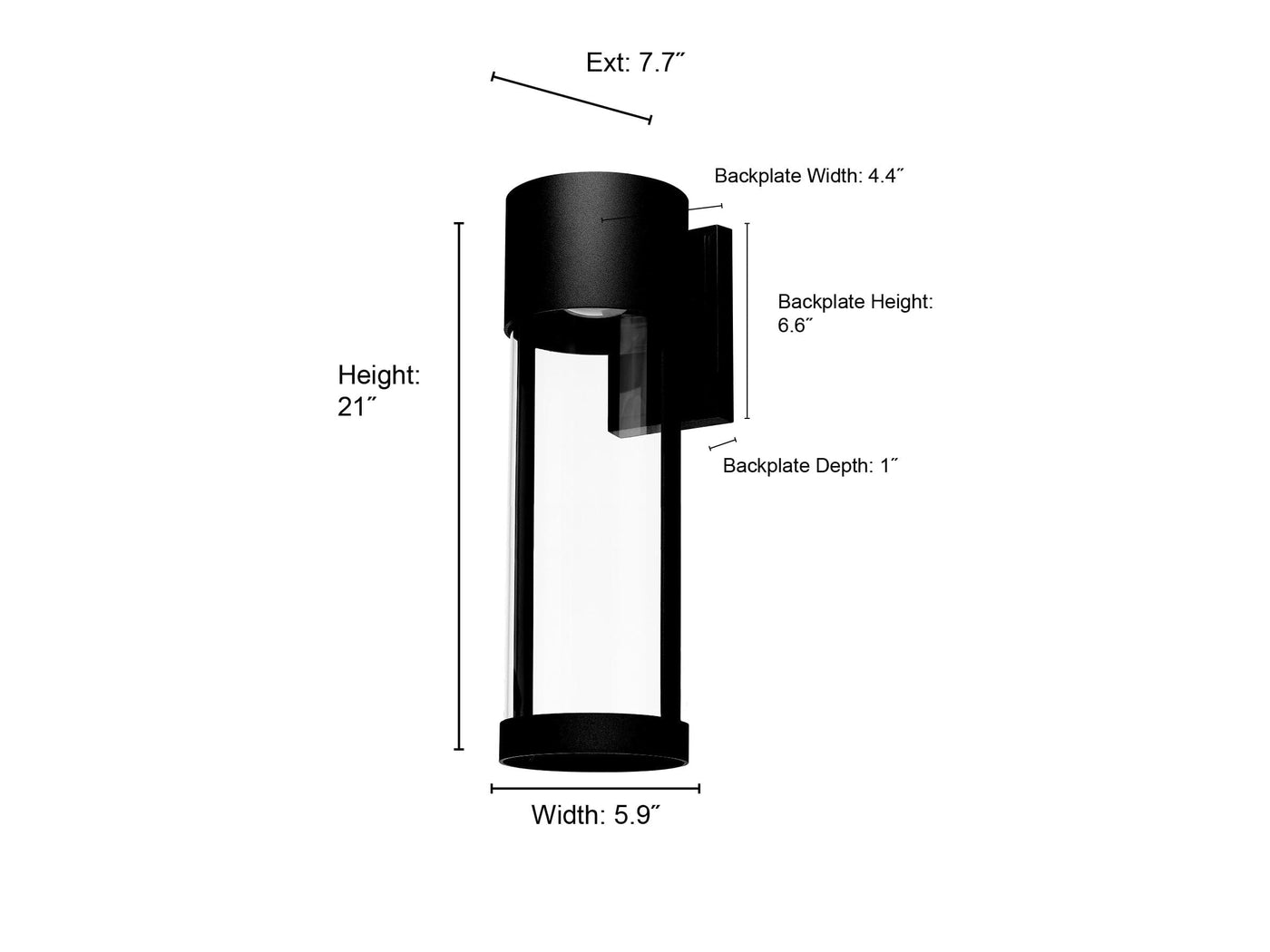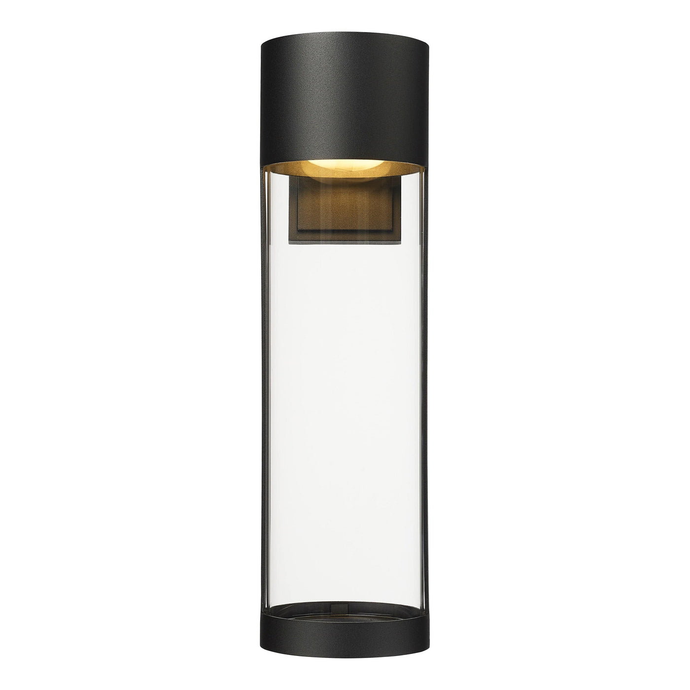 The subtly sophisticated design, available in a variety of heights, features a clear glass cylinder suspended downward and encased in a modern aluminum frame finished in durable powder coated black.