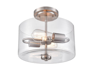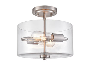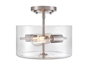Verlana Semi-Flush Mount Fixture - Brushed Nickel - Clear Glass - 11in. Diameter - E26 Medium Base