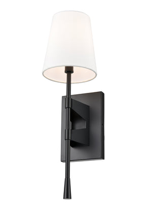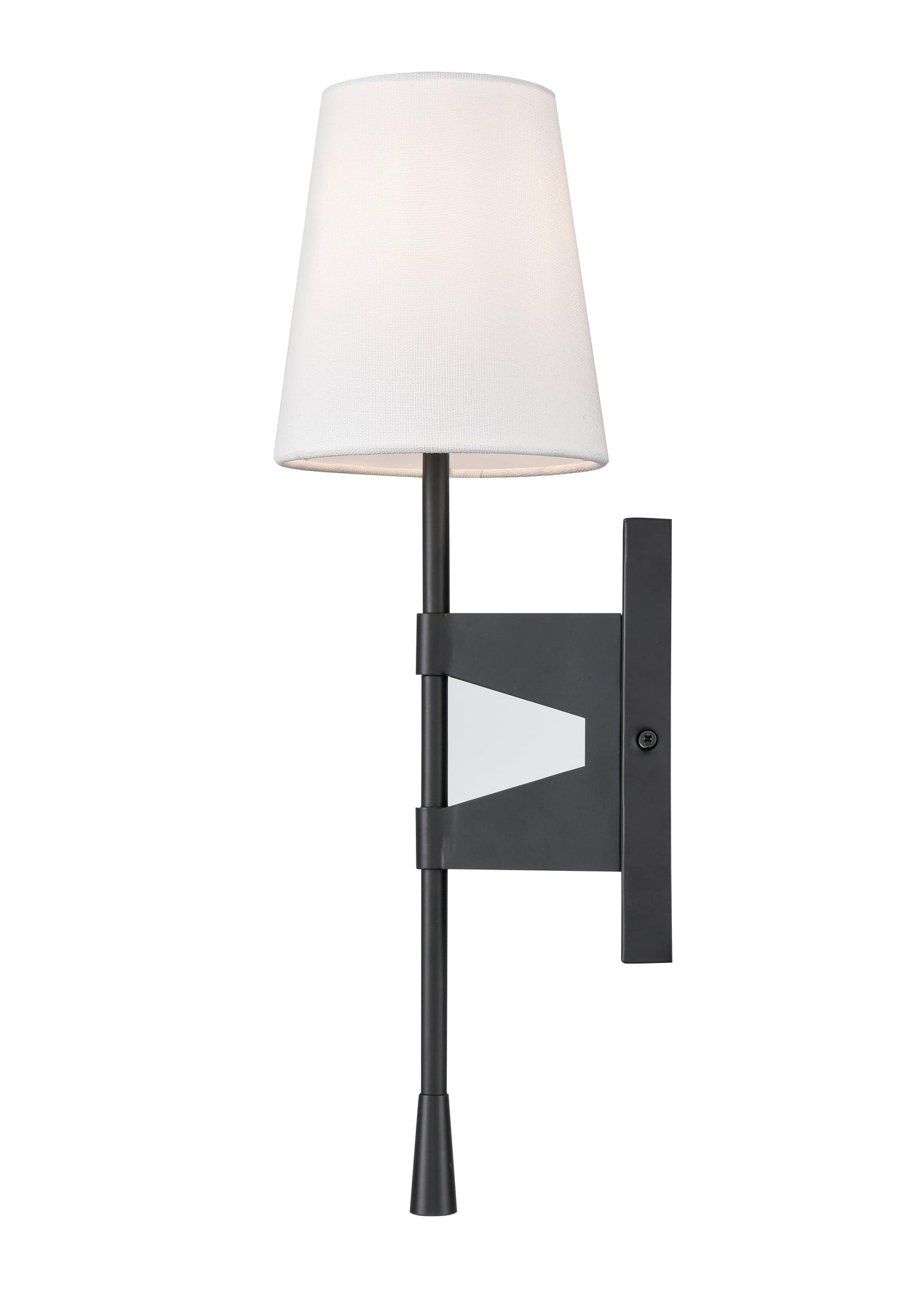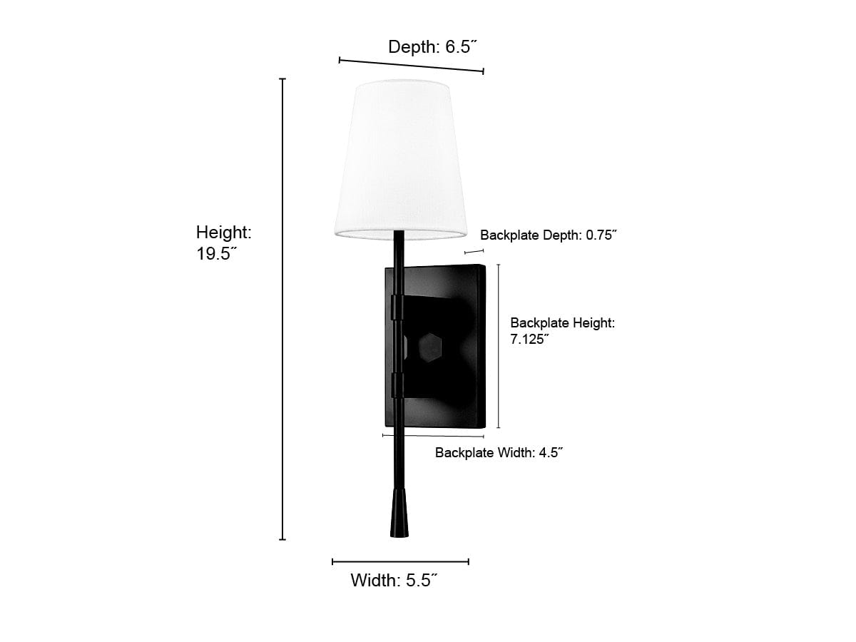 Wall Sconce - Matte Black - White Linen Shade - 6.5in. Extension - E12 Candelabra Base